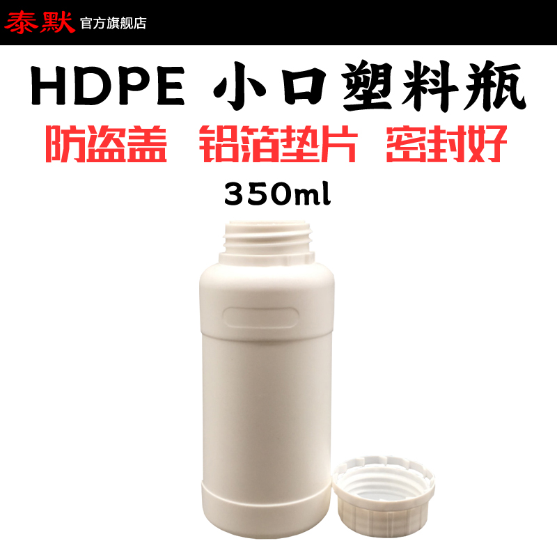 泰默现货白色350ml小口HDPE塑料瓶 防盗盖 带铝箔垫片TP45
